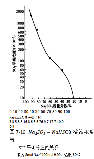 na2so3-NaHso3溶液濃度與SO2平衡分壓關(guān)系見圖7-10.