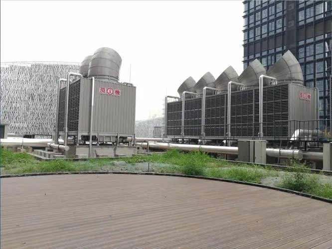 控制冷卻塔排風扇進出氣口噪聲,可在冷卻塔進排風處安裝特制消聲器。對進排氣口噪聲突出的冷卻塔,此方法降噪效果明顯;